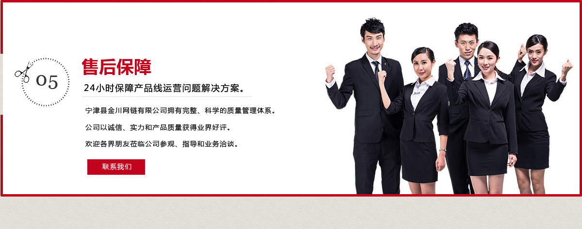 寧津縣金川網鏈有限公司 手機:18706390255 手機:18888222851 聯系人:許經理 郵箱:2278781213@qq.com 地址:山東省德州市寧津大祁工業園 網址:www_sdjcwl_com.ltgsyzc.com ![]() |